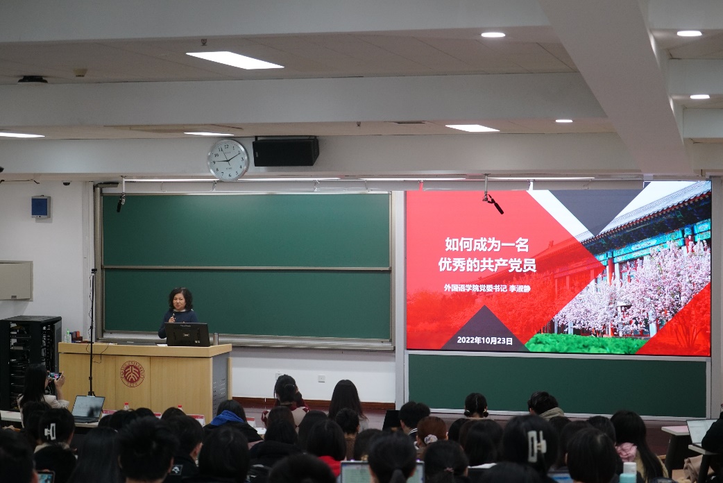 10月23日上午,北京大学第35期党的知识培训班B体育平台开班仪式暨党委书记讲党课活动在北京大学理科教学楼107教室举行。本次党课由学院党委书记李淑静担任主讲。学院团委书记伍昕钰、党委秘书冯一帆、团委副书记熊珊儿出席会议。参加本期党的知识培训班的200余名外院学子满怀憧憬齐聚一堂,认真聆听,接受教育。活动由学院团委常务副书记、第35期党的知识培训班领队辅导员丁雨婷主持。