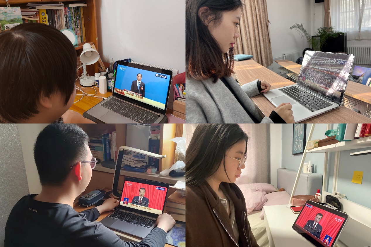 B体育平台组织师生通过多种方式收听收看两会开幕盛况、学习会议精神。师生纷纷表达了勇立潮头、奋楫争先的决心与信心。