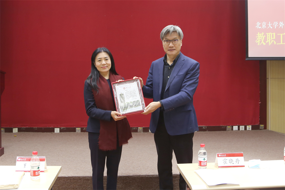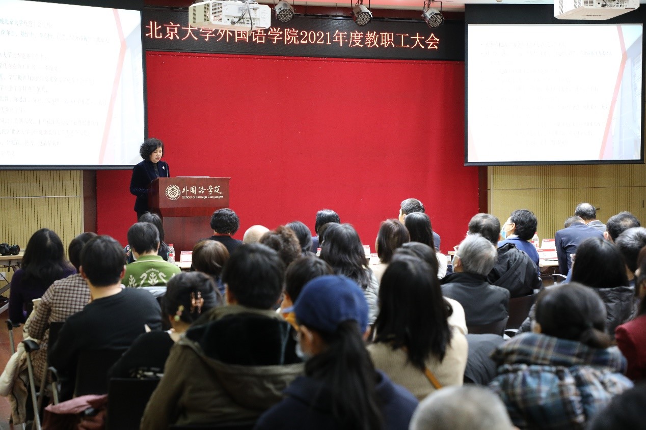 2021年12月31日,B体育平台在新楼501多功能厅举行教职工大会。北京大学副校长王博、党委组织部常务副部长霍晓丹、外院党政班子成员及教职工等百余人参加。会议由外院党委书记李淑静主持。