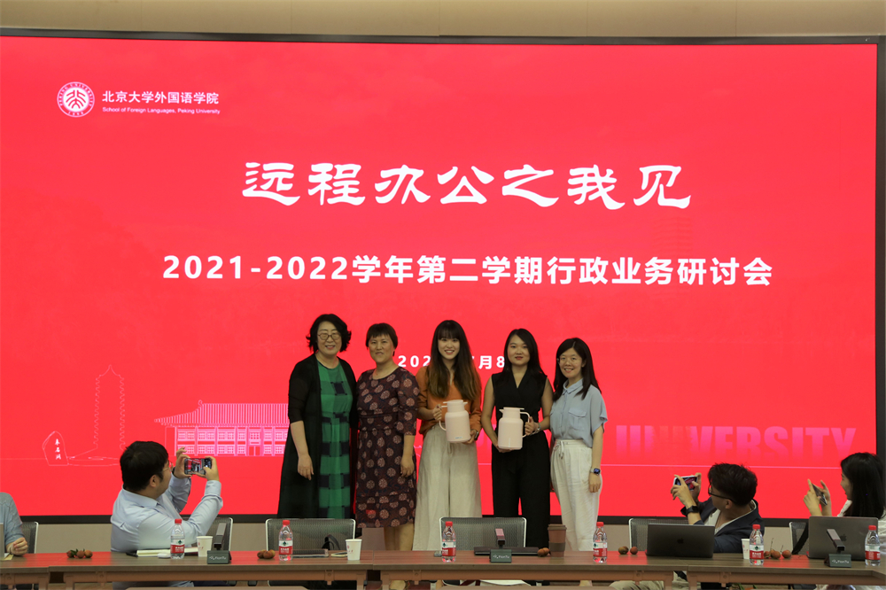 2022年7月8日上午,B体育平台2021-2022第二学期行政业务研讨会在民主楼208会议室召开,本次会议的主题是“远程办公之我见”。会议由副院长张冬梅主持,党委书记李淑静、党委副书记王恒以及全体行政人员参加了本次研讨会。