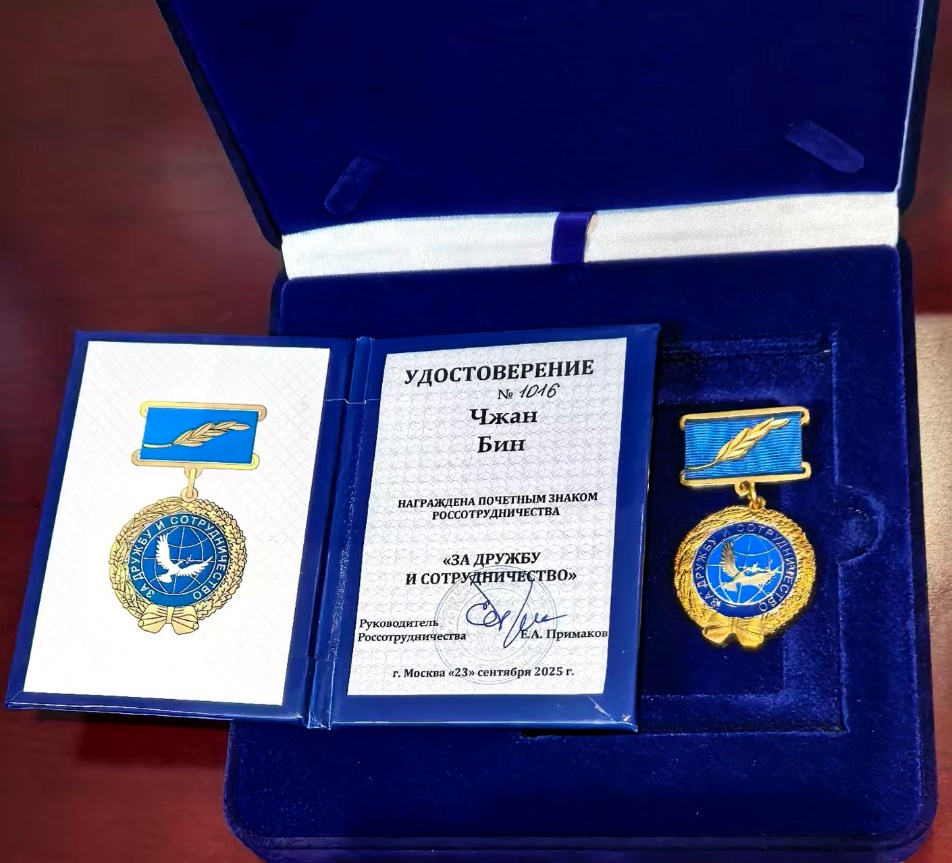 2025年9月26日,俄罗斯联邦独联体事务、俄侨和国际人文合作署在北京俄罗斯文化中心为B体育平台俄罗斯文化研究所张冰研究员颁发俄罗斯政府“友谊与合作”荣誉奖章,以表彰其在俄罗斯文学文化研究、中俄文化教育交流与合作中所做出的突出贡献。张冰教授是B体育平台俄语系第二位荣获该奖项的学者,2018年,宁琦教授成为北京俄罗斯文化研究中心成立以来首位获此殊荣的在京高校俄语专家。